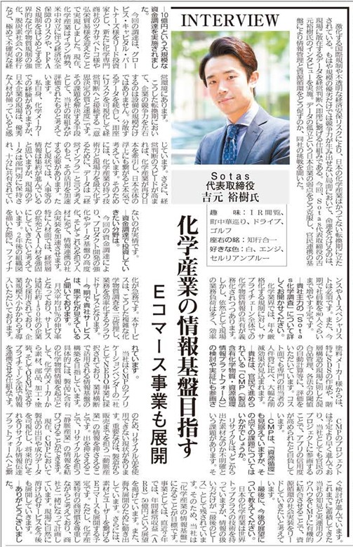 塗料報知2026年3月27日号に代表吉元のインタビューが掲載されました